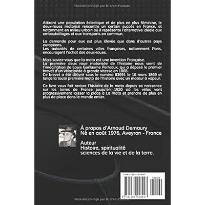 Attirant une population éclectique et de plus en plus féminine, le deux-roues motorisé rencontre un certain succès en France, et notamment en milieu urbain où il représente l’alternative idéale aux embouteillages et aux transports en commun. La demande pour eux est plus élevée que dans d'autres pays européens. Les autorités de certaines villes françaises, notamment Paris, encouragent l'achat des deux-roues, Mais saviez-vous que la moto est une invention Française. La première deux roue motorisée de l'histoire nous vient de l'imagination de Louis Guillaume Perreaux, qui a déposé le premier brevet d'un vélocipède à grande vitesse en 1868. Ce brevet a été délivré sous le numéro 83691 le 16 mars 1869 et lança la toute première moto de l'histoire avec un moteur à vapeur. Ce livre vous fait revivre l'histoire de la moto depuis sa naissance sur les terres de France jusqu'en 1920 où les vélos vont progressivement laisser la place a La moto et prendre de plus en plus de place dans le monde entier.