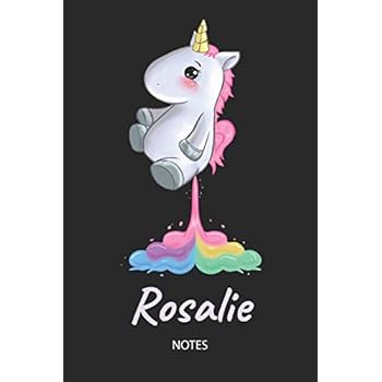 Rosalie - Notes: Noms Personnalisé Carnet de notes / Journal pour les filles et les femmes. Kawaii Licorne pétant arc-en-ciel. Accessoires de licorne ... cadeau original anniversaire femme. Details